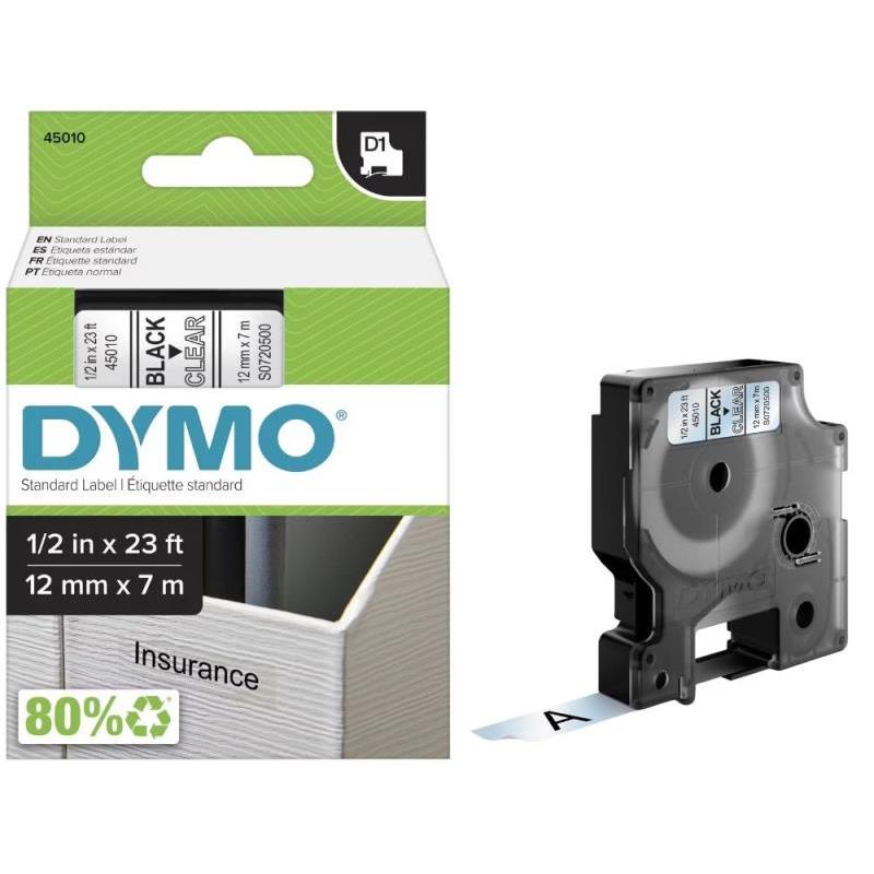 CINTA DYMO D1 12 MM. X 7 M. NEGRO/TRANSP. (S0720500)