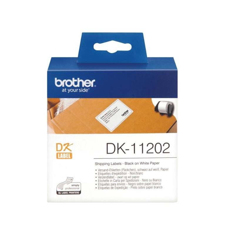 Rollo de etiquetas de dirección originales Brother DK-11202. Etiquetas blancas precortadas de 62 x 100 mm que garantizan una adhesión profesional y duradera.