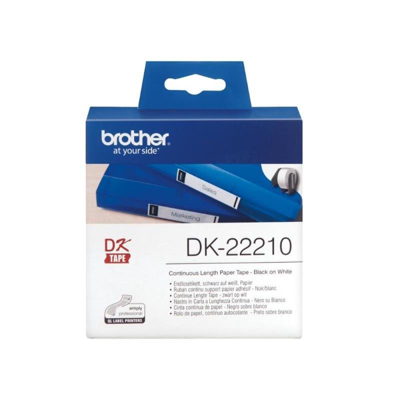 Cinta de papel continuo original Brother DK-22210. Rollo de 29 mm x 30,48 metros con adhesivo de alta calidad para etiquetas personalizadas de cualquier longitud.