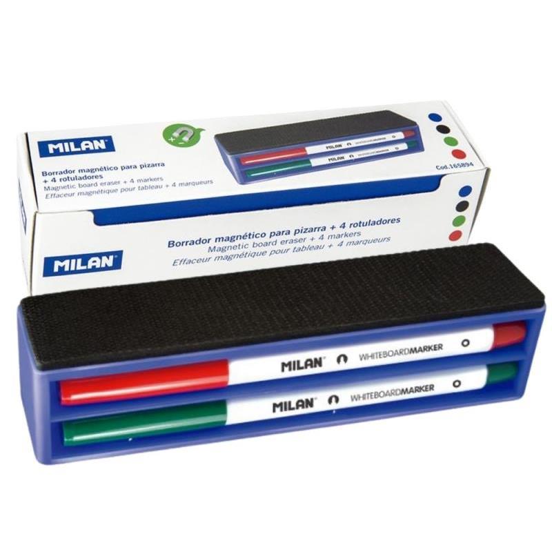 BORRADOR MILAN CON SOPORTE MAGNÉTICO + 4 ROTULADORES PIZARRA BLANCA (165894)