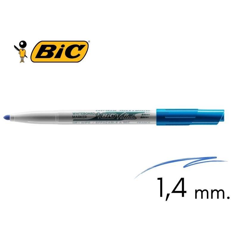 El rotulador BIC Velleda es un marcador de alta calidad diseñado específicamente para su uso en pizarras blancas. Este modelo en particular viene en color azul y cuenta con una punta redonda de 1,4 mm, lo que lo hace ideal para escribir y dibujar con precisión.