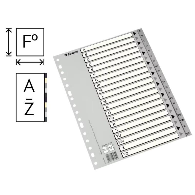 Organiza tus documentos de manera eficiente y duradera con el separador alfabético Esselte. Ideal para oficinas, escuelas y uso doméstico, este separador de plástico A-Z de tamaño folio garantiza una clasificación rápida y sencilla, adaptándose a cualquier sistema de archivo gracias a su diseño multitaladro.