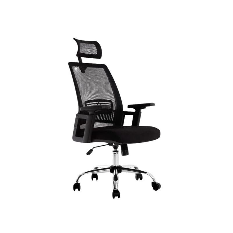 Ergonomía: Respaldo Alto: Soporte total para la espalda, ayudando a mantener una postura adecuada y reduciendo la fatiga. Reposacabeza Ajustable: Permite ajustar la altura e inclinación del reposacabeza para mayor comodidad y soporte del cuello. Materiales: Base de Metal: La base robusta asegura durabilidad y estabilidad. Tapizado: En malla y tejido de color negro, ofrece comodidad y resistencia al desgaste. Ajustes: Altura del Asiento Ajustable: Permite al usuario ajustar la altura de la silla (46-53,5 cm) para adaptarse a su escritorio y postura. Inclinación del Respaldo: Ajuste del ángulo del respaldo para mayor confort. Apoyabrazos Ajustables: Facilita la adaptación de la silla a diferentes tipos de actividades, desde la escritura hasta el uso de la computadora. Diseño: Estético Profesional: Moderno y profesional, adecuado para oficinas y salas de reunión de alta dirección. Colores Neutros: Negro, ideal para integrarse en diferentes entornos de oficina.