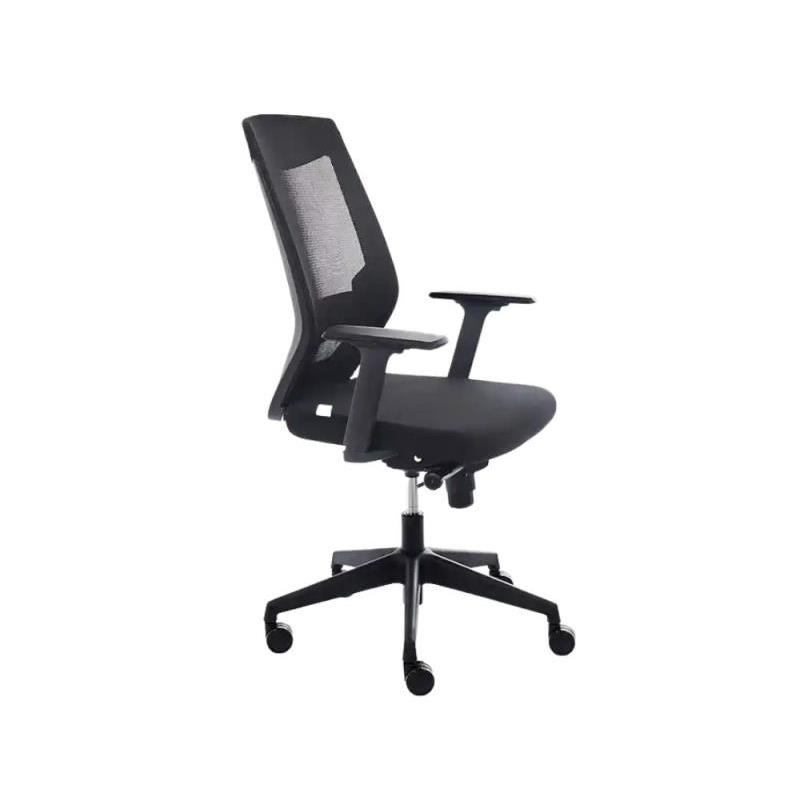 Materiales de Alta Calidad: Asiento tapizado en tela ignífuga negra y respaldo en polímero color negro para mayor durabilidad y seguridad. Diseño Ergonómico: Incluye regulación lumbar y brazos ajustables, favoreciendo una postura adecuada y reduciendo la fatiga. Mecanismo Sincro Basculante: Ofrece un cómodo balanceo y ajuste diario, adaptándose a los movimientos del usuario. Montaje Sencillo: Diseñada para un ensamblaje fácil, permitiendo su rápida implementación en cualquier espacio. Compatibilidad con Ruedas de Parquet RD917: Protege suelos delicados mientras proporciona movilidad suave. Certificación UNE 1335 -1/ -2: Cumple con normas de ergonomía y seguridad, asegurando un uso confiable.