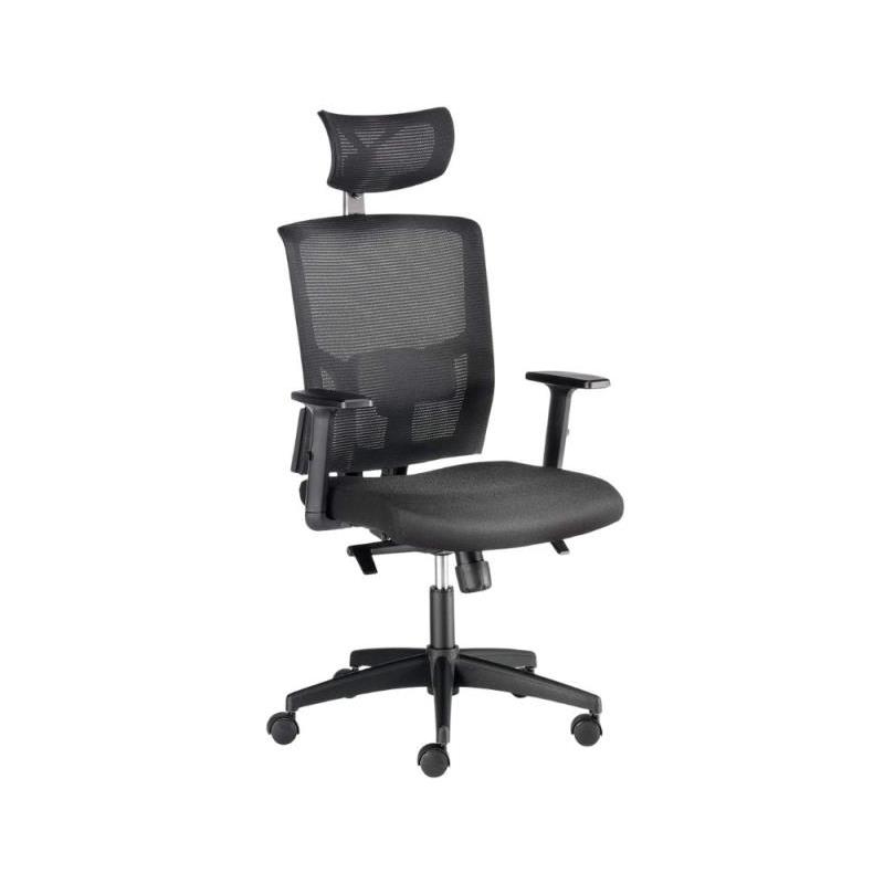 SILLA VIENA ERGONOMICA NEGRA CON CABECERO SISTEMA SINCRO DE MALLA NEGRA
