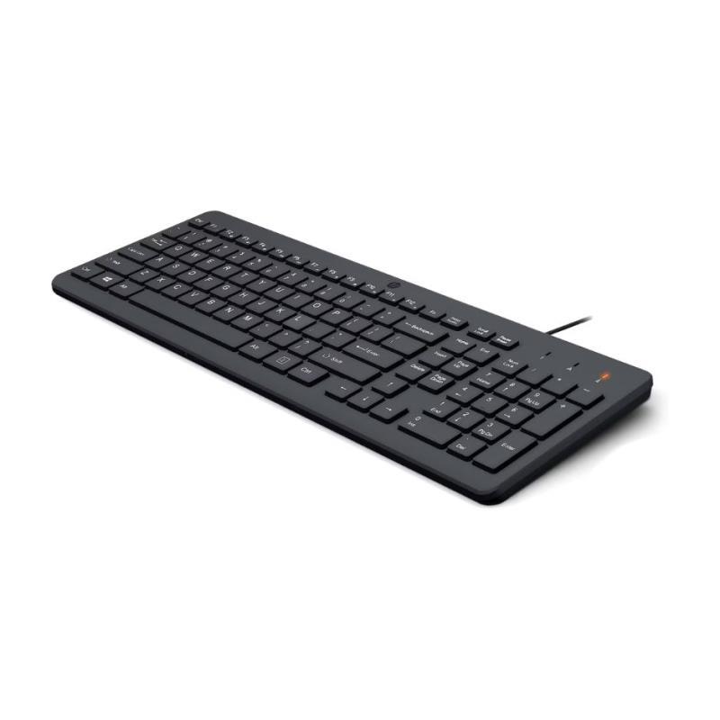 Teclado con cable HP 150 Compañero de viaje ideal, este cómodo teclado con todas las prestaciones irá contigo donde quiera que vayas. Rápido, cómodo y preciso. El diseño de este teclado chiclet resulta muy elegante. Gracias a su perfil bajo, las pulsaciones son rápidas, cómodas y precisas... ¡exactamente lo que buscas! Un atajo en toda regla. Los controles habituales se integran en 12 combinaciones de atajos con la tecla Fn: música, películas, volumen, página de inicio, marcadores y correo electrónico. Eso sí que es un atajo. Conéctalo y empieza a teclear. Empieza a teclear al instante con la configuración plug-and-play mediante USB que te conecta con tu PC de forma rápida y sencilla. Comodidad durante todo el día. El diseño de este teclado se adapta a tu posición natural, sin sobrecargar tus muñecas, y te ofrece la máxima comodidad durante todo el día.
