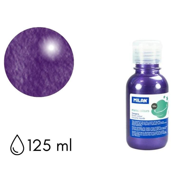 Botella de 125 ml con tapón dosificador, color violeta metalizado. Témpera fabricada con pigmentos de calidad y resistentes a la luz. Los colores son vivos y puros gracias a su composición. Sus colores se pueden mezclar para crear nuevos tonos. La pintura tiene una viscosidad y poder cubriente excelentes. Está lista para usar y ofrece un óptimo rendimiento. Puede diluirse en agua para conseguir tonos más ligeros y un acabado acuoso. Se seca rápidamente.
