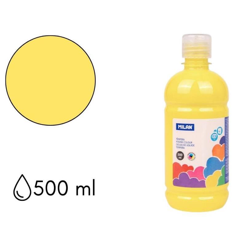 Botella de 500 ml con tapón dosificador, color amarillo claro. Témpera fabricada con pigmentos de calidad y resistentes a la luz. Los colores son vivos y puros gracias a su composición. Sus colores se pueden mezclar para crear nuevos tonos. La pintura tiene una viscosidad y poder cubriente excelentes. Está lista para usar y ofrece un óptimo rendimiento. Puede diluirse en agua para conseguir tonos más ligeros y un acabado acuoso. Se seca rápidamente.